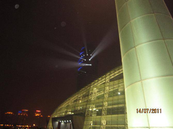 结束以后看到外边的这个高楼在测试灯光,很漂亮呀