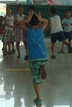 孩子们的花样不停的翻新,看着他们玩的不亦乐乎,我们也很开心。谁说在玩中没有开动脑筋呢,他们每次从起点到终点走这么一遭都要转动一下脑细胞,他们也绞尽脑汁想用不同的方法来博得众人的掌声和欢笑。三轮下来,孩子们额头都冒出细细的汗珠,想到室外温度高,怕热坏了孩子,主持人又把孩子们拉到清凉的教室,喝水休息。