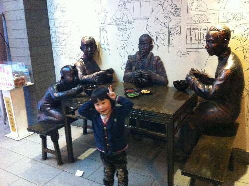 第二天一早,我们在导游小姐的带领下去看了华清池和兵马俑,看那一个个泥捏的人,一排排站在那里好壮观!景致虽好,可是我更关心的是西安的美食在哪里?呵呵,今天终于可以一饱口福了。同盛祥的羊肉泡馍果然名不虚传!馍是我自己掰的,吃起来那滋味自然不一样,那叫一个香呀!快乐的假期就要结束了,躺在返程的车上,我甜甜的睡着了。