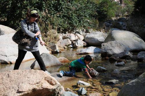 龙峪湾,传说古为蛟龙沐浴之地。那里山巍、水澈、峰奇、石怪、洞幽、瀑壮泉清、植被原始、奇峰林立、古木参天、山势雄伟、峰峦叠嶂、林海茫茫、古木参天。 泉水清澈见底 奇峰 植被原始 古木参天 林海茫茫 油墨画 逍遥谷 以下是孩子开心玩耍的连拍画面 准备 发力 投掷 水花四溅,我乐啊! 用力抛石(很巧妙哦!像个小小魔法师) 泉水叮咚 开心投石