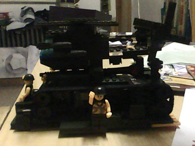(这是我原来组装的“巨无霸”坦克,确实很霸气吧?他前面的叉子下面还有一门炮,后面很这两发导弹,绝对让敌人闻风丧胆。虽然图片不是很清晰。)