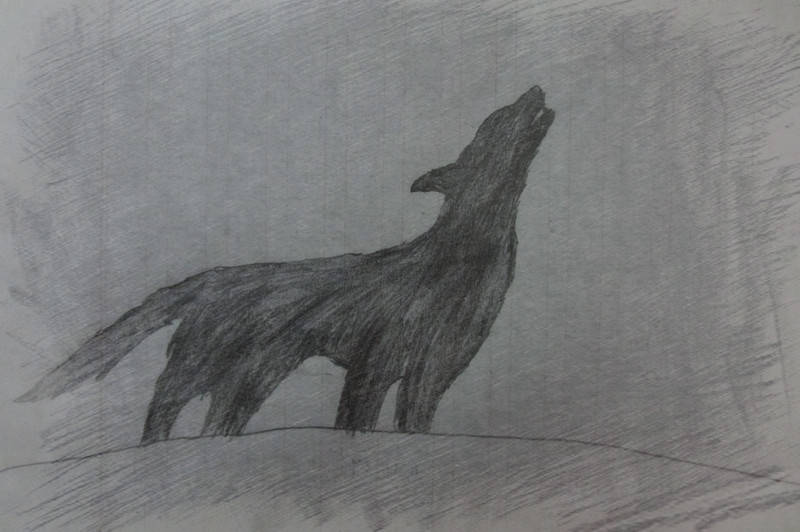 那天,孩子写完作业后,向我展示了一样东西。我一看,竟是一幅画,画得是一只狼,仰头向着天空,似乎要叫响夜空、响彻四方!画得还非常有模有样!