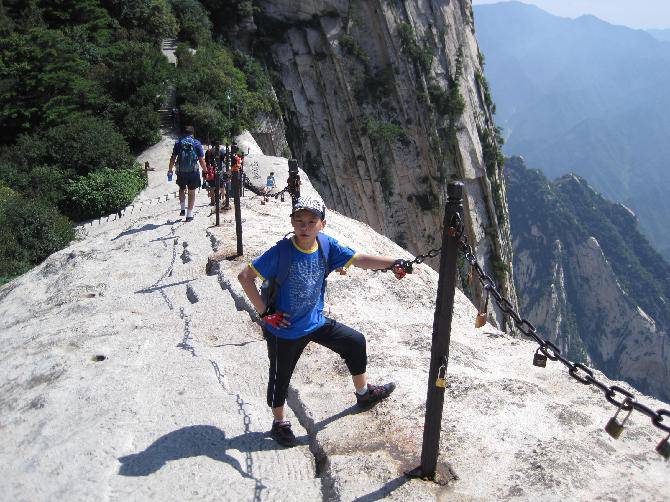 陪伴儿子走天下 再有四个月,儿子就满十四岁了。在近十四年的时间,我陪伴儿子走过了许多地方,在祖国九百万六十平方公里的土地上,虽然不能说是走南闯北,但是跨度也不算小:最北到过祖国的首都北京,最南到过“椰风海韵、度假天堂”的海南,最东到过“海滨城市”威海,最西到过神奇秀美的贵州。去年暑假,我们更是跨出国门,到大洋彼岸的美国进行半个多月的旅行。 在旅行中,我们见识了不同的自然风光、风土人情、文化艺术……对我来说,每一次旅行,带着儿子,有苦也有累,但更多的是幸福美好的回忆;对儿子来说,由于到过很多地方,儿子饱览了课本中的风景,亲密接触了壮美的自然风光和悠久的历史文化,提高了自己的综合素养,见识和阅历在旅行中不断地增长,对学习的帮助也很大。 先说语文吧:儿子学课文《从百草原到三味书屋》,儿子告诉我,因为去过绍兴的鲁迅故居,文中的景物在他的头脑都是鲜活的印象,尤其是那个刻在书桌上的“早”字,所以他更能体会到 再说历史,课本上出现的人物、事件,凡是发生在儿子去过的地方,他就觉得那些过去的人和事像在眼前一样。比如他去过内蒙古,书上讲到匈奴,讲到昭君出塞,讲到铁木真,讲到元朝,他会联系起自己在内蒙古看到的大草原、昭君墓、博物馆中众多资料与文物,想像出一幅幅美丽的画面;比如他去过陕西,书上讲到秦始皇,讲到丝绸之路,讲到贞观之治,讲到武则天,讲到唐玄奘,他熟悉得自家的人和事,因为他知道的东西,比教材上还要详细;再如,他去过北京,去过江西,去过上海,去过山东,去过鄂豫皖根据地,去过贵州遵义,当书上讲到“五四”运动,讲到中国共党的成立,讲到南昌起义,讲到长征,讲到抗战,他会把自己在那些红色旅游景点看到的一幕幕跟课本上的内容连结起来,体会革命先烈的英雄事迹,体会今天幸福生活的来之不易。 至于地理,那就更不用说了,儿子登过高山(若干座,不细说),下过大海(在三亚大东海潜过水,在青岛、威海、连云港、普陀岛的海滨浴场游过泳)、踏过高原(去过地处云贵高原的贵州)、走过盆地(南阳盆地,嘿嘿,这个盆地有点小)、跨过大江大河(长江、黄河、尼亚加拉河),又是生于平原长于平原,所以什么地形地貌、气候土壤、水文植被在他那里全不在话下,地理考试考个满分,人家说那是小“case”。 其实旅行也不单单是看风景,对儿子来说,更重要的是经历不同的生活场景,并在不同的经历中慢慢地成长。 2000年12月,我们到开封玩了一天,那是儿子第一次真正意义上的远行。那时儿子还不到一岁半,正是呀呀学语的时候,我和老公轮流抱着他,面对那么多陌生的面孔与新奇的环境,儿子眼中充满了好奇,尤其是在清明上河园中,有一个喷火的表演,儿子目不转睛地看着,兴奋起来“咯咯咯“笑个不停。 2002年5月,我们去登封嵩山,儿子迈着稚嫩的步伐,在我的牵引下,一步一步登上了山顶。那是儿子第一次爬山,虽然下山的时候人家睡着了,叫也叫不醒,我只好把人家背下了山,但那一次爬山的经历,让儿子明白再远再险的路,只要坚持下去,一步一步走,总会走到终点,攀上高峰。儿子写过一篇作文——《我的名片是“坚持不懈》,他觉得自己坚持不懈的劲头大多来自于登山过程中的坚持。自那以后,每每我们去山里玩,儿子很少要求坐电缆车,总是一步步跟着我,去征服那一座座看似高不可攀的山峰。 2006年8月,我拖老带小去北京。妈妈是老人,儿子、侄子、朋友的儿子晨晨是小孩。我一个人又要照顾老的,又要看护小的,身心疲惫。而且三个在家都是宝贝的孩子到了一起,老是争吵不断,更让我心烦。但后来发生了一件事,让孩子们安静了下来。一天游玩过程中,不知怎么回事,晨晨突然发烧了。我们匆匆忙忙回到宾馆,我去买药,让儿子和侄子陪伴晨晨,我买药回来又把他俩当小伙计支使,一会让他们给晨晨倒水,一会让他们给晨晨用冷毛巾降温,也许是得到了休息,也许是得到了特殊的关照,一个晚上过去,晨晨奇迹般地好了,我们后边的旅程也得以按原计划进行。儿子从这件事中,懂得了谦让,懂得了照顾别人、关心别人,也变得更细心、更体贴。 2009年1月,我带着儿子去海南开会,顺便旅游。在我开会的时候,我把他一个人放在了宾馆。儿子的胆大、心细的性格在那两天中得到了充分的体现。我走之后,宾馆的服务员去打扫卫生,儿子隔着门详细问明情况,然后对服务员说:“我们房间很干净,不用打扫,谢谢你啦!”硬是没让服务员进门。我回去了,叫半天门才开,原来儿子光听到我的声音还不算,还要搬把椅子放在门边,站上去通过猫眼看到真的是我才开的门。和我们同去的同事都不禁夸赞:“这小家伙真了不起!有这份细心,到哪里都不会上当受骗。” 2010年7月,我带儿子去华山。去之前,有朋友说:“华山很险很险,你带个孩子,最好别去了。要是真想去,最好晚上爬,看不到陡峭的山路,心里少点害怕。”我心想,晚上爬山,黑咕隆冬地,看个什么景啊?我和儿子去之前,上网查资料,根据网友们提供的旅行经验,一边订旅馆,一边准备物品。说实话,上火车时我的心里真的很忐忑,我们俩,行吗?登山的那天早上六点,我们出发了。我背一个包,儿子背一个包,那是儿子第一次在旅行中背包,因为过去,我总怕沉沉的旅行包压儿子不长个子,总不让他背包,但那一次,儿子强烈要求和我分担重量。当然也确实是包里东西太多、