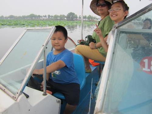 我们在湖面上畅游了近三个小时,在返回的途中,我要求开船的爷爷,让我也驾驶一下,爷爷同意了,我驾驶着小船行驶在宽阔的湖面上,感觉很爽,也有一种自豪感!