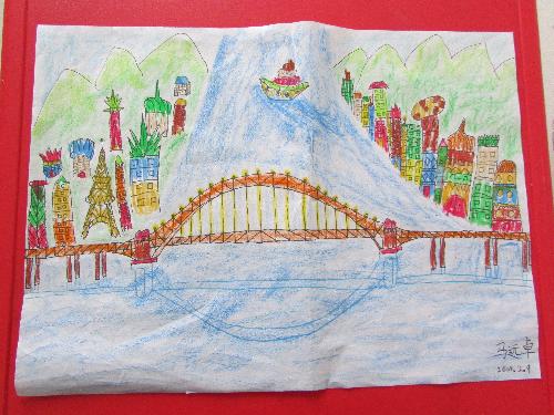 长江是我国的第一大河,它带来了丰富的物产资源,但是也隔开了各处的交通,所以人们修建了许许多多的长江大桥,连接着各个城市。 我经常去武汉,对武汉的几座长江大桥很熟悉,特别是长江一桥既宽阔又高大,分为两层,上层通汽车,两边还有人行道;下层通火车,可以同时有两列火车通过。它是我国在长江上建起的第一座大桥,被人们称为“万里长江第一桥”。 在众多的长江大桥里,我觉得巫山长江大桥是最漂亮壮观的,晚上拱形桥上灯光璀璨,像是一道巨大的彩虹连接在两座大山之间,我忍不住拿起画笔把它画了下来。 这一座座长江大桥连接着我国南北的交通,让大家方便地走出自己的家乡,去开阔眼界,互相交流学习,不断进步发展。 |