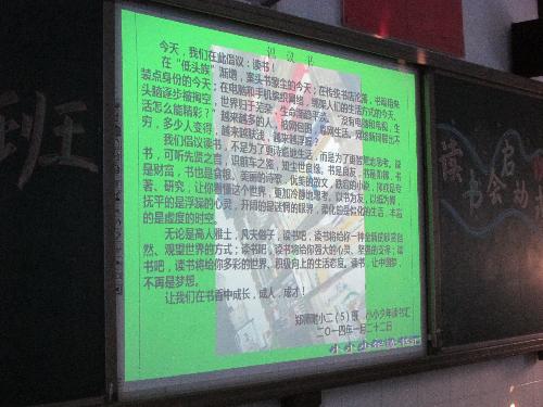 2014年元月22号下午,学校已经放假,但是二五班的教室里气氛却非常热烈,这里正在举行一场读书会启动仪式。