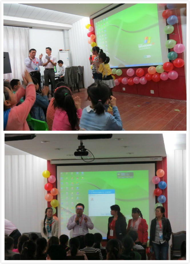 上图是孩子们在台上展示,下图是妈妈们台上展示 全体小朋友诵读《游子吟》。大约八九十个小朋友用洪亮的声音诵读这首关于母爱的经典古诗。参会的学生有一年级的,也有五年级的,年龄层次不同,有背诵的,也有看着屏幕读的。 主持老师背过去脸说:“我说一二三,我转过来,看到谁先举手,就让谁上主持台,给大家背诵这首诗,上台的同学可以获得小勋章一枚。”“一,二,三——”主持人转过头,哗——地,小朋友们都把手举得高高的。主持人用手指着,“你,你,你”一下子上来好几个,还有的小朋友,左看看,右看看,发现老师没叫起他,自己主动上台。最好主持台上站了十几个小朋友,主持人说:“开始!”台上的人有站着笔直的读着,背着,还有人摇头晃脑地读着。 主持人又叫第二批小朋友,有的家长看到自己的孩子没举手,悄悄地走到前边对孩子说:“举呀,举手呀!”甚至有的家长拉着自己的孩子,把他推上台去。主持台上又有了一批朗诵者。 第三批,第四批……直到所有的小朋友都上过台。