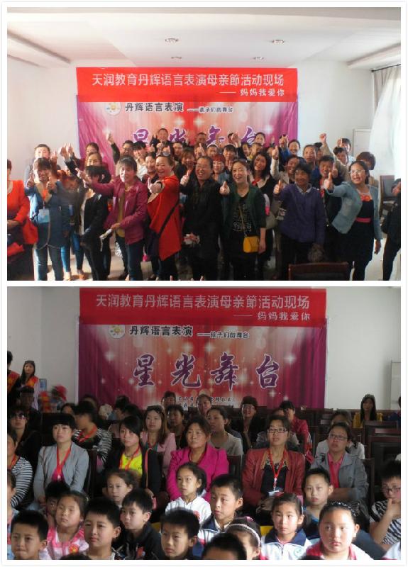 上图是孩子们在台上积极展示 主持人采访请那名哭得“呼哧、呼哧”的妈妈和她的孩子上台, 主持人问:“孩子妈妈,你为什么哭这么很呢?” 那位妈妈:“谢谢天润教育搞的这次活动,我心里太激动了,在孩子一勺一勺地喂我饭时,我突然觉得他长大了。” 主持人又采访孩子,“宝贝,你以前喂过妈妈饭吗?” 孩子摇着头说:“没有,从来没有。”说着说着,孩子眼里也储满了泪水。 主持人:“宝贝,妈妈养你这么大容易吗?” 孩子说:“不容易!” 主持人:“是,不容易,在这母亲节来临之时,你最想给妈妈说什么呢?” 孩子手拿话筒大声说:“妈妈,我爱你!我以后一定好好学习,来报答您!” 接着主持人又采访了几位妈妈,有位妈妈在主持台上搂住自己的女儿大哭起来,她是一位在生活和工作中都很要强的妈妈,因为忙于事业,她很少照顾自己的女儿,觉得自己亏欠孩子太多,在眼泪中当着大家的面说:“宝贝,我以后一定抽出时间来陪陪你!”女儿也“哇”地大声哭起来,并对着话筒大声说:“妈妈,我理解你,我爱你,永远爱你!” 大家看着这个七八岁的孩子这么懂事,都纷纷地抹着眼泪,为这对母女感动着,还有什么,比这母子之爱更感人呢?  大会第的四项—— 踩气球活动 墙上沾着五颜六色的气球,小朋友们摘下来自己最喜欢的那个,里面会出来一个小纸条,上面写着:给你的妈妈和在场所有的妈妈们表演一个节目、 给妈妈唱一首歌,给妈妈们朗诵一首诗,给妈妈们讲一个故事。主持人是让每位孩子都有上台的机会,发现那位小朋友想表现又不敢举手,刚才一直没有上台的,主持人就让他来摘气球。天润少儿语言表演学校的一贯的原则,也是让每个小朋友都上台。 三个小时的室内活动,并没让这些小学生感到累,他们结束时大声表示,他们以后还要参加周末快乐活动。大家一起合影结束!