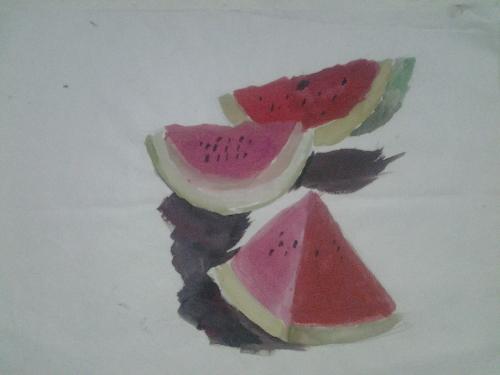 晒晒我的画 今天中午,爸爸和妈妈去上班了,姐姐也去练钢琴了,只有我一个人孤单单地在家里。一个人在家干点什么呢?看着家里到处都是我画的画,我就想起把它们整理到一块。说干就干,不一会功夫,我就收拾好了。看着厚厚的一摞画,我有点吃惊,不知不觉中我竟然画了这多张画了。于是,我干脆坐下来,一张一张地翻看着: (这一幅是我学素描不久,爸爸在家看电脑时,我偷偷画的)。 这是我画的水粉画: 这是我刚刚才学的国画: (是不是特别不好看?没关系,我一定会努力画好的。) 看着这一幅幅的画,我仿佛又看到了我画画时的样子,也看到了我的进步和不足,而且我也体会到了只要努力,只要坚持就会有收获。以后的日子,我一定会更加努力地画好每一幅画。