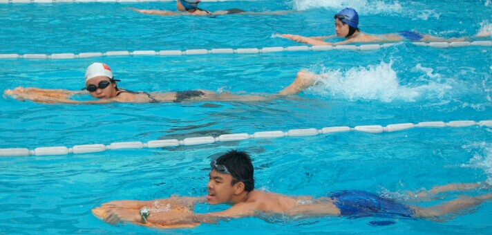 来到游泳池边,我复习了昨天学的换气,教练告诉我们今天学漂。把两手放在游泳板两侧,把头埋到水里,游起来,并把双脚抬起来,这就是漂。我们要游五个来回!