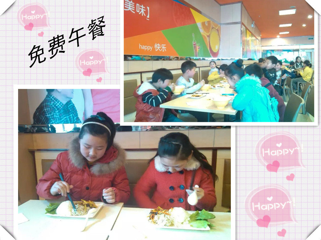 中午时分,我们来到“洛阳传承永和豆浆店”吃午餐,这顿午餐是这里的叔叔阿姨们特意免费为我们提供的,除了有丰富可口的快餐外,还有营养美味的豆浆,谢谢他们的爱心。饭后,大家都迫不及待地来到体育馆放风筝。