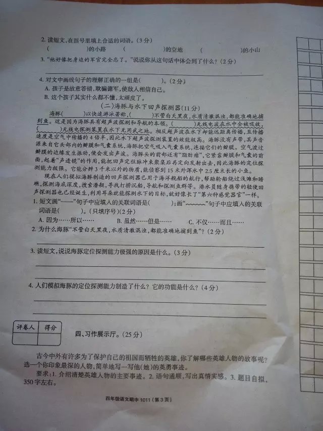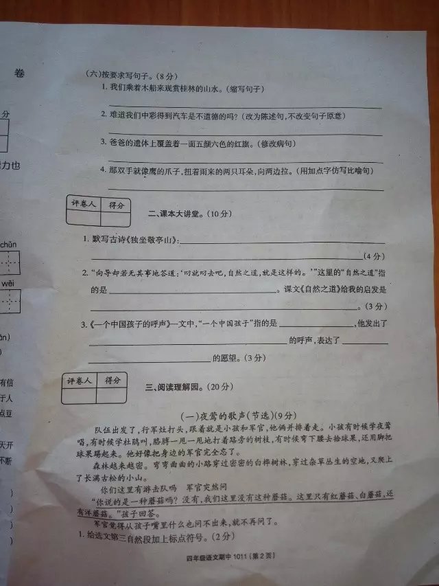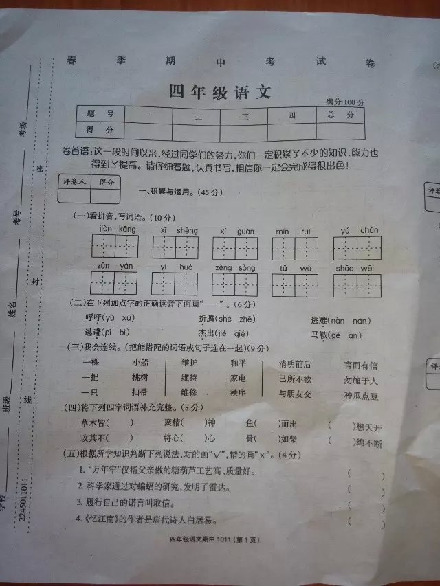 四年级语文期中考试卷