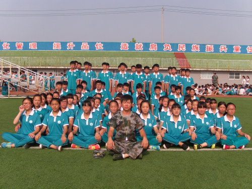 当教官和同学们走到主席台前开始演出时我极其紧张,这个时候我不敢拍照,其实我很想拍,也想把他们的演出过程录下来,但我不敢,我怕影响到他们。我甚至不敢站起来观看,我在看台上一会儿站一会儿做,站起来怕影响他们,坐着怕他们不认真,不知该坐还是站。令人欣慰的是学生们表现非常之好,是所有拉练中最好的一次,声音高昂,步履一致,赢得了所有评委和在场同学、教官的热烈掌声,更赢得了这次军训会演第一名的好成绩。一份耕耘一份收获,祝贺你们——孩子们,你们是这次军训中最美的花!