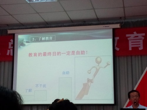 “为什么要教育孩子?”“我们教育孩子到底是为了谁?”这两个问题看似幼稚,可面对老师的提问又支支吾吾,找不到合适的语言来表达。“教育孩子是为了给孩子一个美好的未来;我们教育孩子是为了孩子,更是为了我们自己。”“教育从了解开始。”“了解孩子,了解教育,了解自己。”梁老师以此为题,用最朴实的语言为家庭子女教育讲座拉开了序幕。
