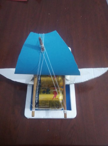 手工小制作  准备材料: 卡纸、线、3个易拉罐、3根筷子、透明胶带、剪刀 制作过程: 1.首先要先把3个易拉罐对齐,把2根筷子放到3个易拉罐的两边沿; 2.接着把线系在筷子的一头上,再沿着易拉罐的边沿系到另一端;(另一根筷子也这样) 3.系好后用透明胶纸把易拉罐和筷子固定好; 4.在中间的易拉罐上弄个小孔,把筷子插到小孔里; 5.把剪好的风帆挂到筷子上,再用线把固定好; 6.于是,帆船就做好了。 后来,我又突发奇想地给帆船加了两个“翅膀”,我想这样更有利于它的平衡。最后,我亲自制作的海上帆船就诞生了。  望着帆船,我仿佛看到了茫茫大海中,有几只帆船在向我急速行驶过来,当行驶到我眼前时,我眼睛一亮,咦!原来是我制作的帆船啊! |