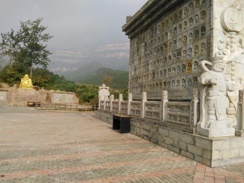 这时我们走到了洪谷山的第一处景点:万佛塔。走进塔内,金碧辉煌的佛像立刻吸引住我,佛像的样子安详,让人一看便立刻感受到了古代人民的智慧。万佛塔外表面的墙壁上雕刻着许许多多的佛像,它们表情不一、姿态各异,精美的雕刻工艺使我再次想起古代劳动人民的伟大。